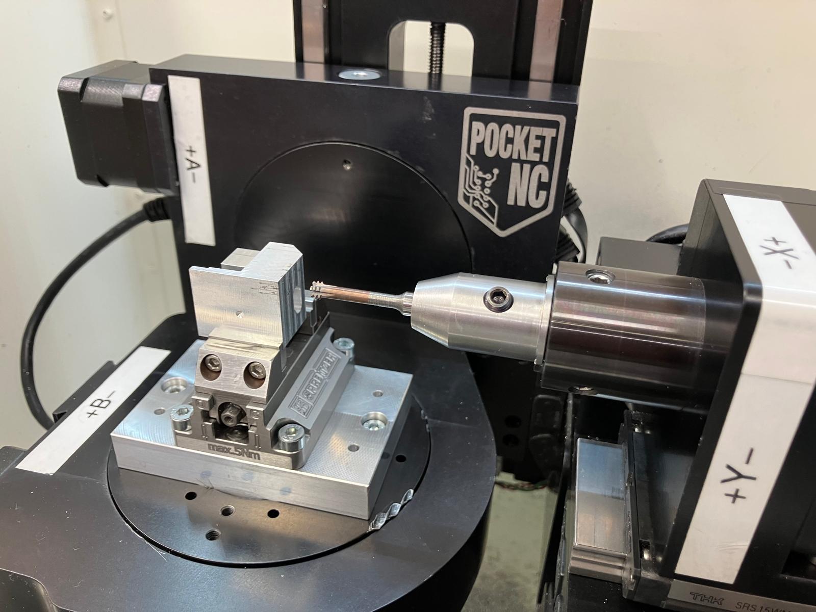 The first three centering attempts were done with a D5mm drill, but that didn’t work. The spindle power and the torque of the pocket are too weak for the D5mm drill. I produced the clearance hole D5.035mm using a milling drill.