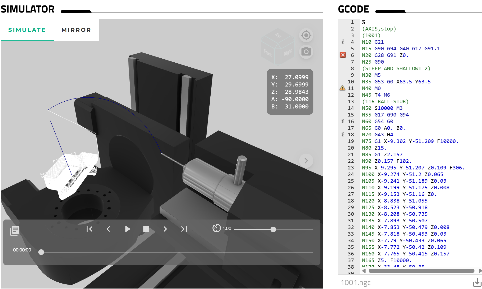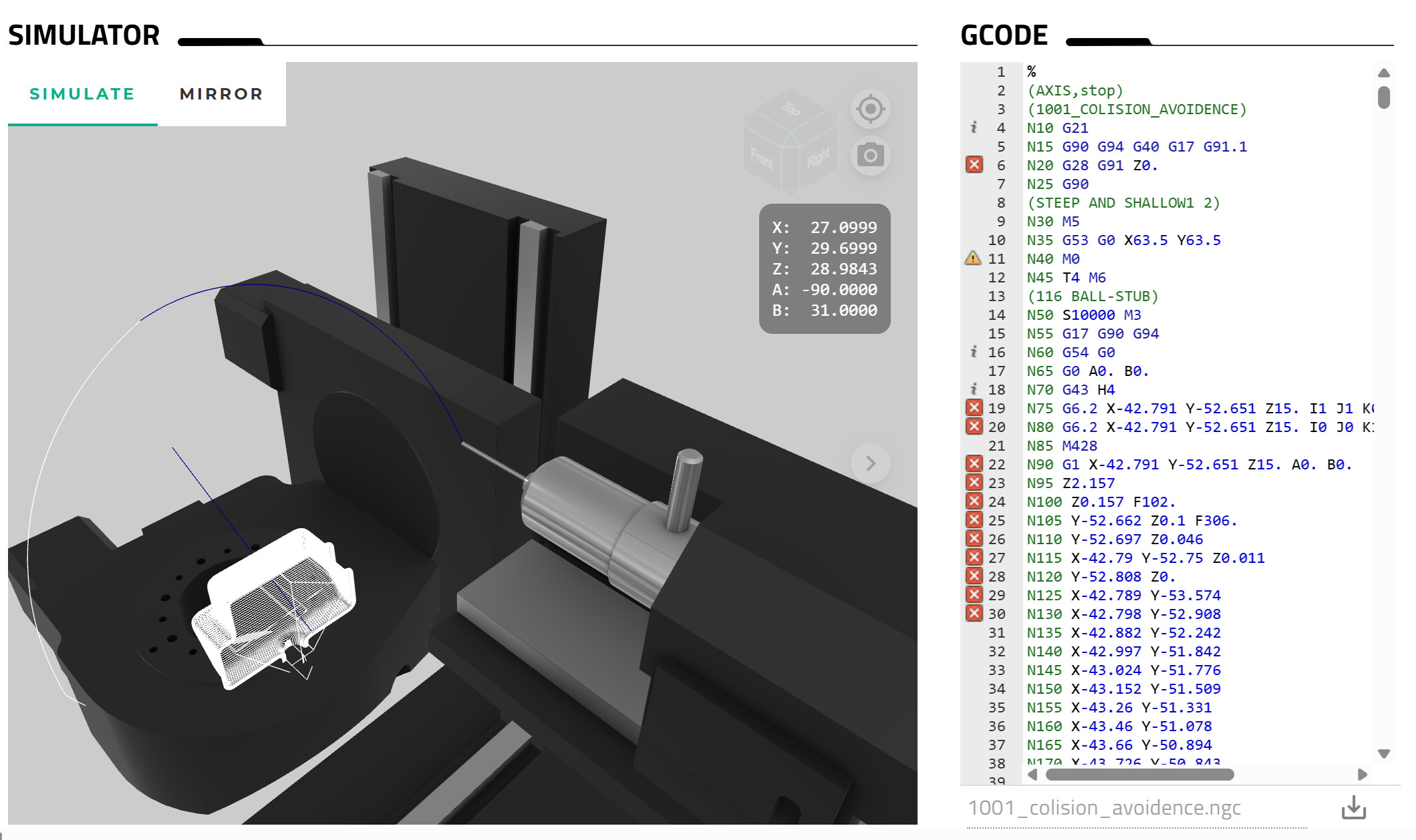 which cause abnornal A axis rotation at the beggining, collisions and tool movement z-axis also differs in comparison to fusion simulation